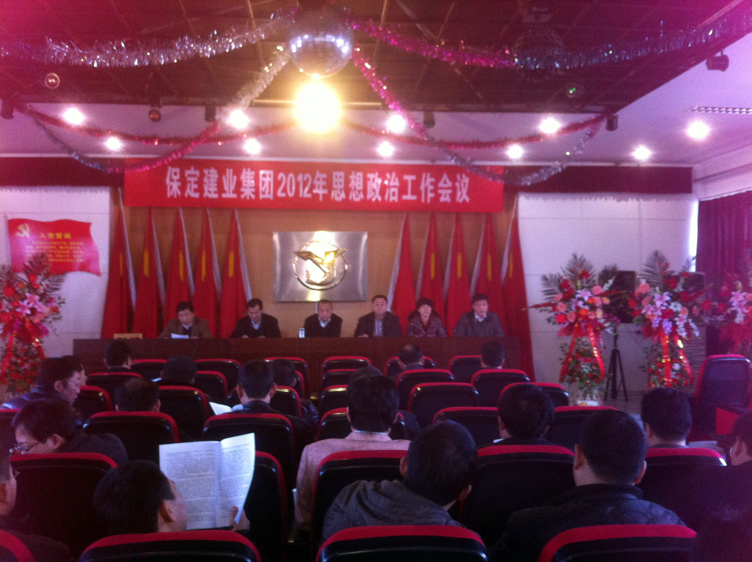 2012年3月14日,球速体育平台2012年思想政治工作会议在庄严的国歌声中拉开了序幕,会议由党委办公室主任马亚军主持,集团各公司党、政、工、团、妇、武装、保卫负责人参加会议。